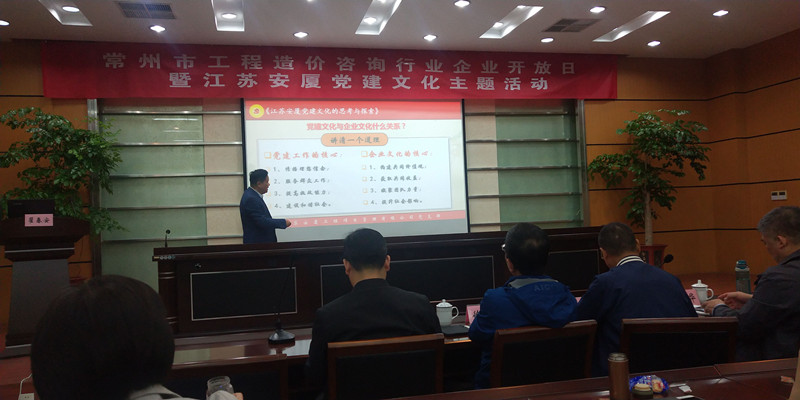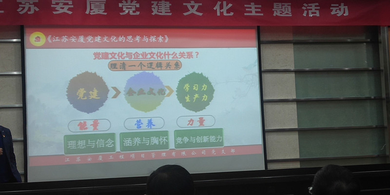 10月30日下午,公司參加了由行業(yè)協(xié)會在江蘇安廈工程項目管理有限公司組織的活動,主題為企業(yè)開放日暨黨建文化交流。組織者精心設(shè)置了現(xiàn)場參觀、經(jīng)驗分享、互動交流諸多活動內(nèi)容,在經(jīng)驗分享和互動交流環(huán)節(jié),主講人對關(guān)于“發(fā)展”的思考、發(fā)展靠什么、黨建文化與人本黨建、黨建工作與企業(yè)文化的核心、黨建與企業(yè)文化的邏輯關(guān)系、黨建工作制度設(shè)計等課題,聯(lián)系行業(yè)和工作實際,作了深入探究與分析,聽后大家進一步感悟到黨建引領(lǐng)的巨大作用,是真正的“新時代”企業(yè)發(fā)展的核心動力,收獲很大。