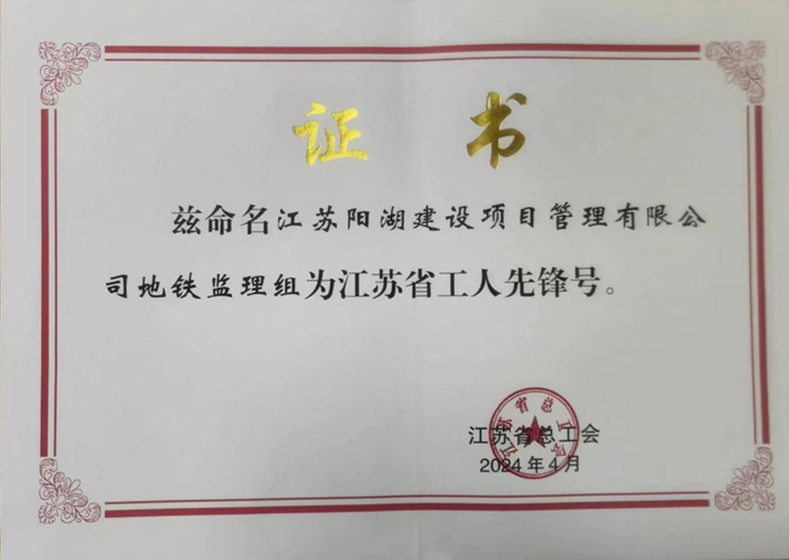 “五一”國際勞動節(jié)即將到來之際,我們江蘇陽湖建設項目管理有限公司地鐵監(jiān)理組獲評江蘇省“工人先鋒號”榮譽稱號。