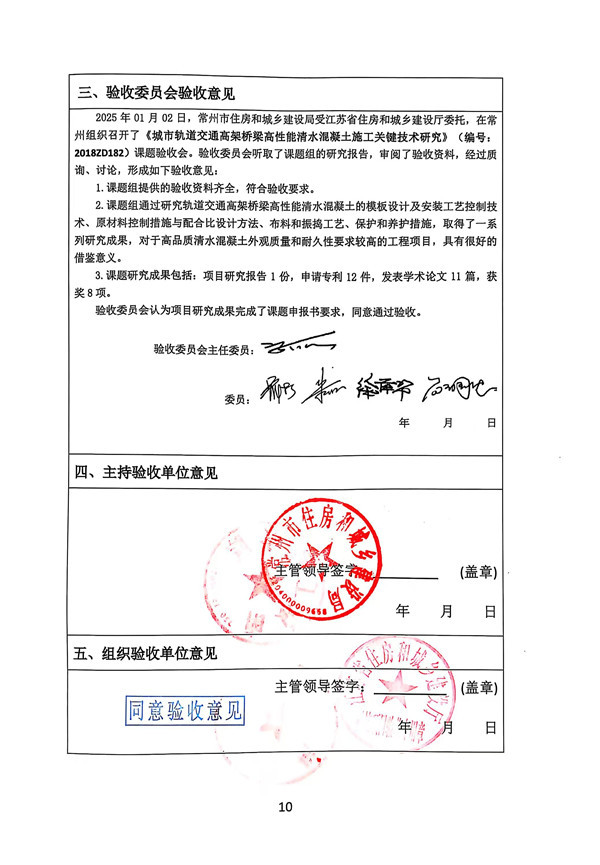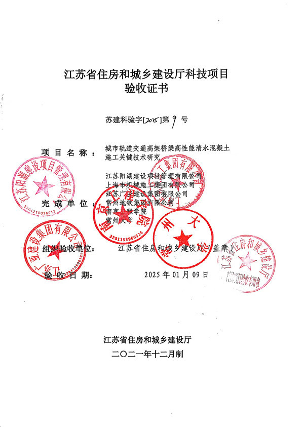 由江蘇陽湖建設(shè)項(xiàng)目管理有限公司、上海市機(jī)械施工集團(tuán)有限公司、江蘇廣亞建設(shè)集團(tuán)有限公司、南京工程學(xué)院、常州大學(xué)等單位聯(lián)合承擔(dān)的江蘇省住房和城鄉(xiāng)建設(shè)廳科技項(xiàng)目“城市軌道交通高架橋梁高性能清水混凝土施工關(guān)鍵技術(shù)研究”結(jié)題啦!