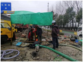 由于長虹路與西太湖大道交叉口北段西側(cè)污水管道約20米范圍內(nèi)出現(xiàn)塌陷現(xiàn)象,導致部分污水溢流至附近河道內(nèi),對當?shù)氐纳鷳B(tài)造成了不利的影響。西太湖監(jiān)理部承接該項維修工程的監(jiān)理任務(wù)之后,為抓緊完成該段污水管段的維修工作,監(jiān)理部積極與西太湖管委會建設(shè)局、設(shè)計單位、施工單位溝通、協(xié)商污水管段維修的施工方案。目前可供現(xiàn)場施工的方案共計有三種,其一是在塌陷井周邊施工逆做井,其二是采取大開挖的方式進行施工,其三是采取三重管高壓旋噴加固樁+局部樹脂原位固化法進行非開挖修復施工。