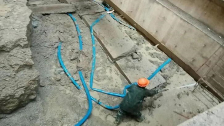 武南第二污水處理廠進(jìn)水泵房,平面尺寸為27.4m×14.1m,沉井部分總高度為15.23m,設(shè)計(jì)基底黃海高程-9.43m,為一期工程******沉井。整個(gè)池壁分為三模澆筑,其中頂部1.5m×0.6m大梁屬于高大模板支撐工程,專項(xiàng)施工方案經(jīng)專家論證后組織施工,并經(jīng)專家驗(yàn)收通過(guò)。該沉井內(nèi)部隔倉(cāng)多、深度深,參建各方組織多次討論,最終確定沉井下沉采用水沖法施工。自9月17日開始下沉,情況一切正常。