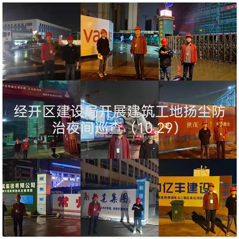 日前,根據(jù)市大氣辦關(guān)于“削峰”工作的通知,要求進一步強化工地揚塵源的管控,以加密灑水噴淋作業(yè)為保障,使揚塵防治標準達到“六個百分百”。基于這些要求,經(jīng)開區(qū)建設(shè)局適時啟動第三方輔助組展開夜巡模式,最終實現(xiàn)“以點保區(qū),以區(qū)保市”之目的。