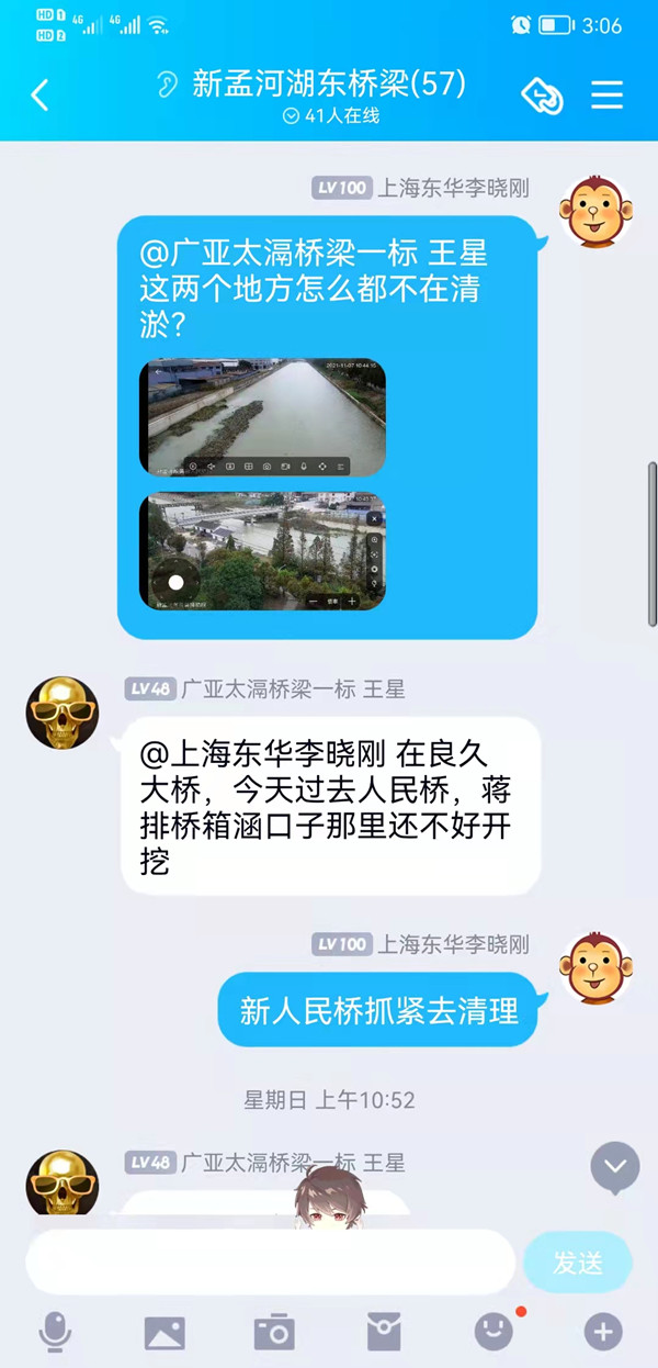 新孟河延伸拓浚工程目前處于最后的沖刺收尾階段,工作量大、任務(wù)繁重。突如其來(lái)的人員隔離管控,對(duì)于原本監(jiān)理組人員安排緊湊的情況下,無(wú)疑是雪上加霜,全盤(pán)打亂了近期工作計(jì)劃。為了在隔離期間不停止工地的正常運(yùn)行,一周來(lái),我們通過(guò)電話、微信、QQ、高清探頭等網(wǎng)絡(luò)工具進(jìn)行工作聯(lián)系,不僅維持了監(jiān)理組內(nèi)部正常運(yùn)轉(zhuǎn),也保證了工程正常監(jiān)理活動(dòng)的開(kāi)展。