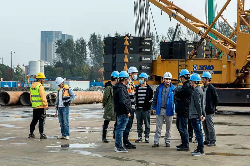 為了確保此次地下連續(xù)墻施工的順利完成,總監(jiān)代表王衛(wèi)星率領(lǐng)全體監(jiān)理部人員蹲守現(xiàn)場(chǎng),并多次組織施工單位召開現(xiàn)場(chǎng)會(huì)議及交底,研討制定鋼筋籠起吊方案及混凝土澆筑方案。
